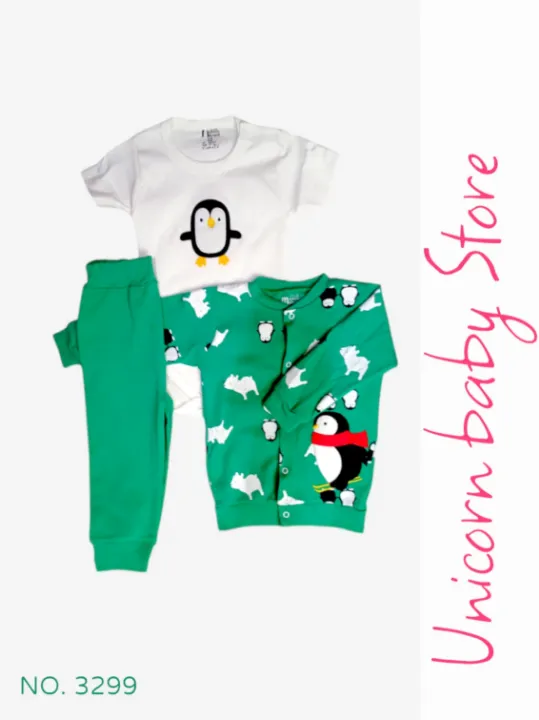 هذا الطقم الأنيق والمريح مثالي للأطفال من حديث الولاده إلى سنة. يتكون من سالوبيت نص كم وجاكيت و بنطلون، مما يضمن لطفلك إطلالة مميزة ومريحة .